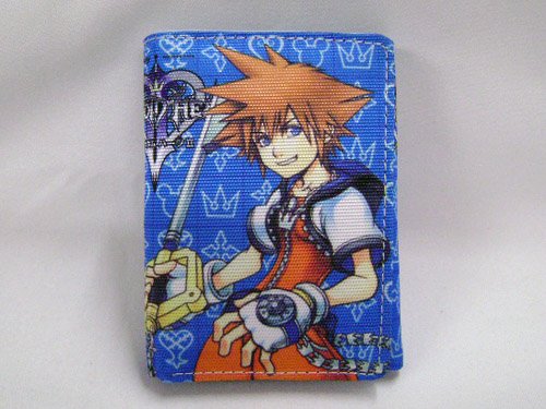 This is a trifold wallet from the popular game series, Kingdom Hearts! This vinyl and canvas wallet features many forms that Sora takes on! Classic, Wisdom and Final Form! Sora stands in front of a pattern of Kingdom Hearts icons and symbols.The interior of the wallet is a blue vinyl with 7 pockets. 2 bill pocket, 4 card slots, and 1 ID slot. The wallet has a snap for closure. Its a fun and unique item for fans of the Kingdom Hearts series! Carry it everyday!